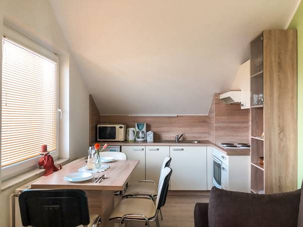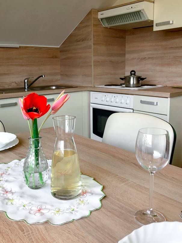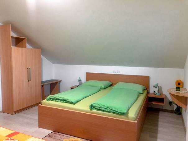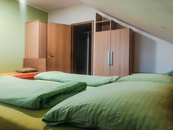 1/3+1: v spalnici je francoska postelja in postelja za eno osebo, ter ležišče v dnevnem prostoru. Apartma je klimatiziran.